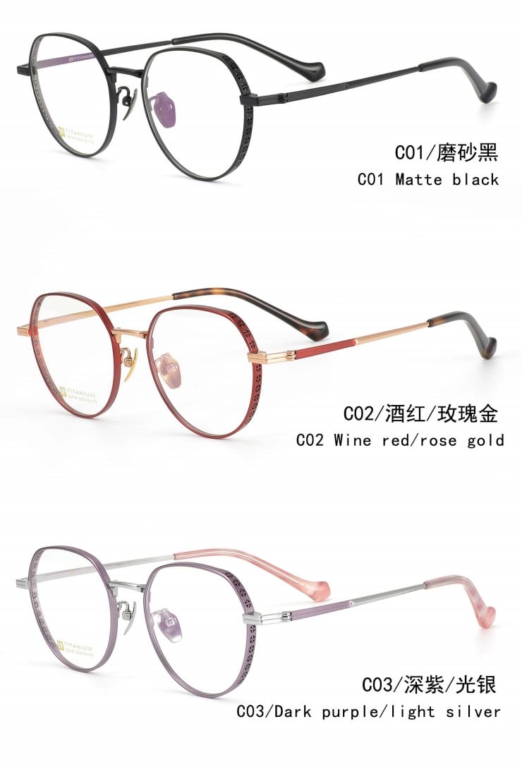 3,眼鏡框不僅用於矯正視力問題,如近視、遠視、散光等,還成爲了一種時尚的附屬品。因此廠家提供了多種鏡框顔色來滿足我們的搭配需求。這很好的解決了我們日常妝容、服飾與鏡框顔色的搭配難題。