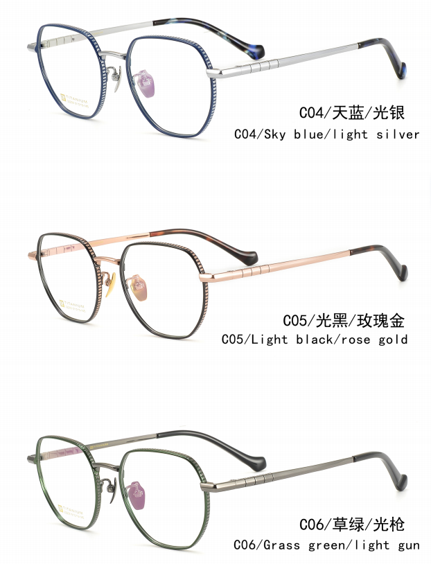 3,眼鏡框不僅用於矯正視力問題,如近視、遠視、散光等,還成爲了一種時尚的附屬品。因此廠家提供了多種鏡框顔色來滿足我們的搭配需求。這很好的解決了我們日常妝容、服飾與鏡框顔色的搭配難題。