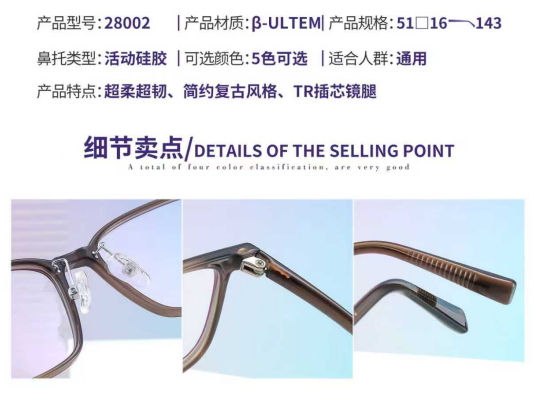 3,眼鏡框不僅用於矯正視力問題,如近視、遠視、散光等,還成爲了一種時尚的附屬品。因此廠家提供了多種鏡框顔色來滿足我們的搭配需求。這很好的解決了我們日常妝容、服飾與鏡框顔色的搭配難題。