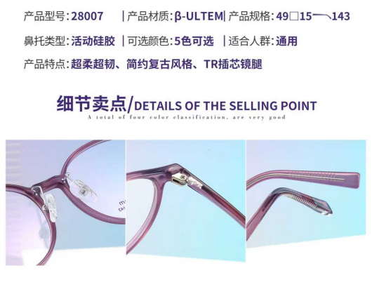 3,眼鏡框不僅用於矯正視力問題,如近視、遠視、散光等,還成爲了一種時尚的附屬品。因此廠家提供了多種鏡框顔色來滿足我們的搭配需求。這很好的解決了我們日常妝容、服飾與鏡框顔色的搭配難題。