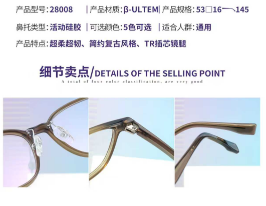 3,眼鏡框不僅用於矯正視力問題,如近視、遠視、散光等,還成爲了一種時尚的附屬品。因此廠家提供了多種鏡框顔色來滿足我們的搭配需求。這很好的解決了我們日常妝容、服飾與鏡框顔色的搭配難題。