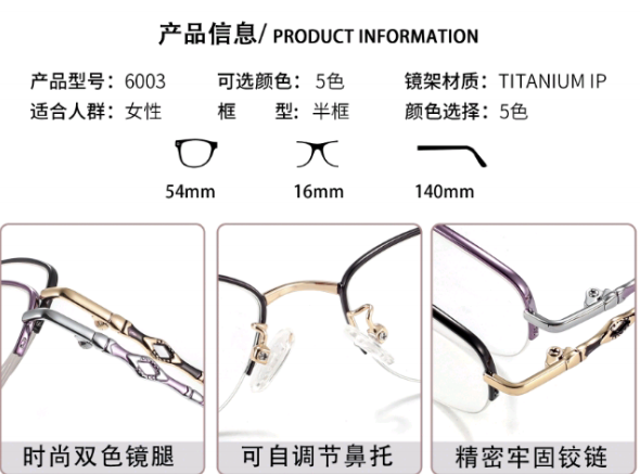 3,眼鏡框不僅用於矯正視力問題,如近視、遠視、散光等,還成爲了一種時尚的附屬品。因此廠家提供了多種鏡框顔色來滿足我們的搭配需求。這很好的解決了我們日常妝容、服飾與鏡框顔色的搭配難題。