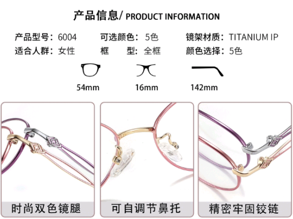 3,眼鏡框不僅用於矯正視力問題,如近視、遠視、散光等,還成爲了一種時尚的附屬品。因此廠家提供了多種鏡框顔色來滿足我們的搭配需求。這很好的解決了我們日常妝容、服飾與鏡框顔色的搭配難題。