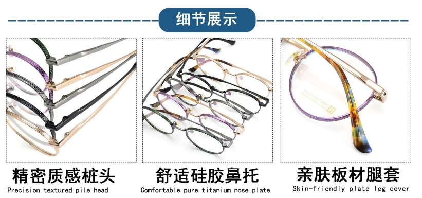 3,眼鏡框不僅用於矯正視力問題,如近視、遠視、散光等,還成爲了一種時尚的附屬品。因此廠家提供了多種鏡框顔色來滿足我們的搭配需求。這很好的解決了我們日常妝容、服飾與鏡框顔色的搭配難題。