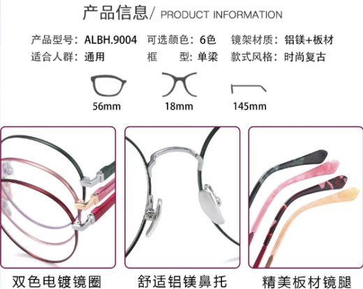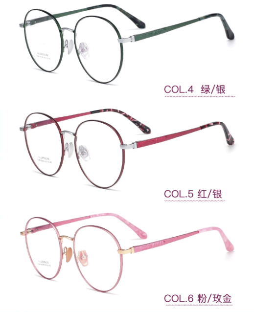 3,眼鏡框不僅用於矯正視力問題,如近視、遠視、散光等,還成爲了一種時尚的附屬品。因此廠家提供了多種鏡框顔色來滿足我們的搭配需求。這很好的解決了我們日常妝容、服飾與鏡框顔色的搭配難題。