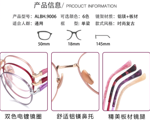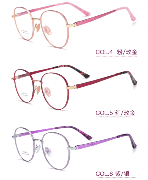 3,眼鏡框不僅用於矯正視力問題,如近視、遠視、散光等,還成爲了一種時尚的附屬品。因此廠家提供了多種鏡框顔色來滿足我們的搭配需求。這很好的解決了我們日常妝容、服飾與鏡框顔色的搭配難題。