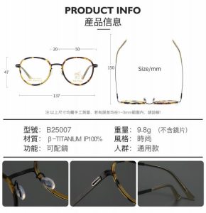 3,眼鏡框不僅用於矯正視力問題,如近視、遠視、散光等,還成爲了一種時尚的附屬品。因此廠家提供了多種鏡框顔色來滿足我們的搭配需求。這很好的解決了我們日常妝容、服飾與鏡框顔色的搭配難題。
