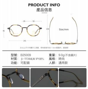 | 顏色 | C2 虎紋/啞黑, C3 外琥珀內橘/啞黑, C5 光黑/咖色, C6 虎紋/咖色, C8 光黑/深灰, C10 玳瑁/啞深藍, C11 外琥珀內橘/啞深綠 |