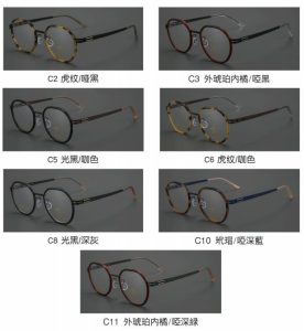 3,眼鏡框不僅用於矯正視力問題,如近視、遠視、散光等,還成爲了一種時尚的附屬品。因此廠家提供了多種鏡框顔色來滿足我們的搭配需求。這很好的解決了我們日常妝容、服飾與鏡框顔色的搭配難題。