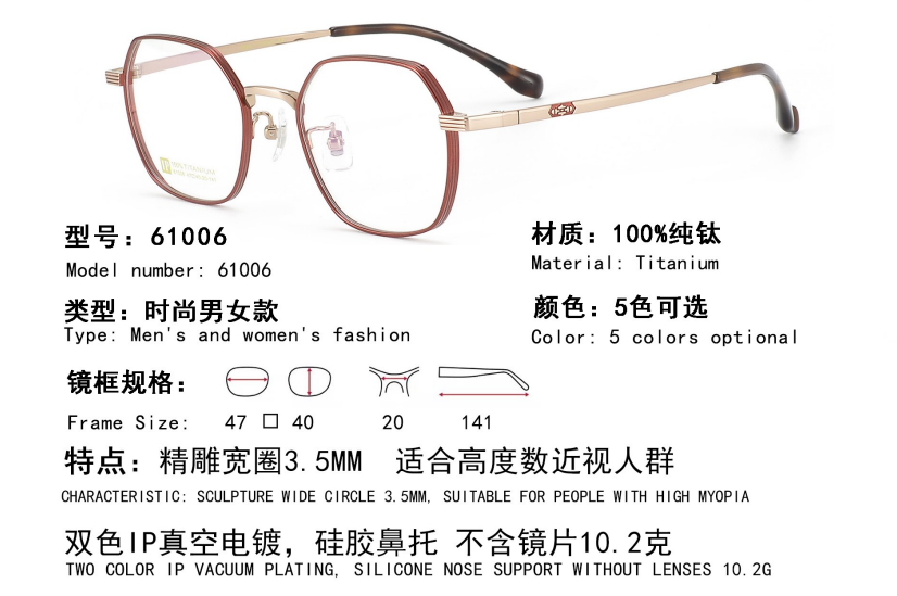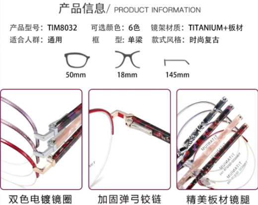 3,眼鏡框不僅用於矯正視力問題,如近視、遠視、散光等,還成爲了一種時尚的附屬品。因此廠家提供了多種鏡框顔色來滿足我們的搭配需求。這很好的解決了我們日常妝容、服飾與鏡框顔色的搭配難題。