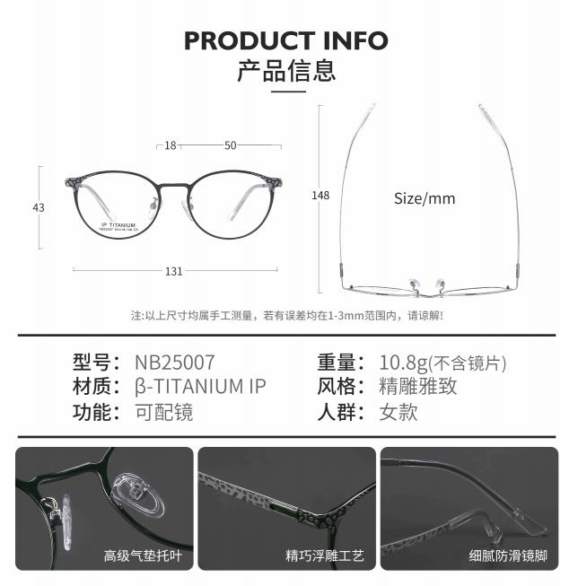3,眼鏡框不僅用於矯正視力問題,如近視、遠視、散光等,還成爲了一種時尚的附屬品。因此廠家提供了多種鏡框顔色來滿足我們的搭配需求。這很好的解決了我們日常妝容、服飾與鏡框顔色的搭配難題。